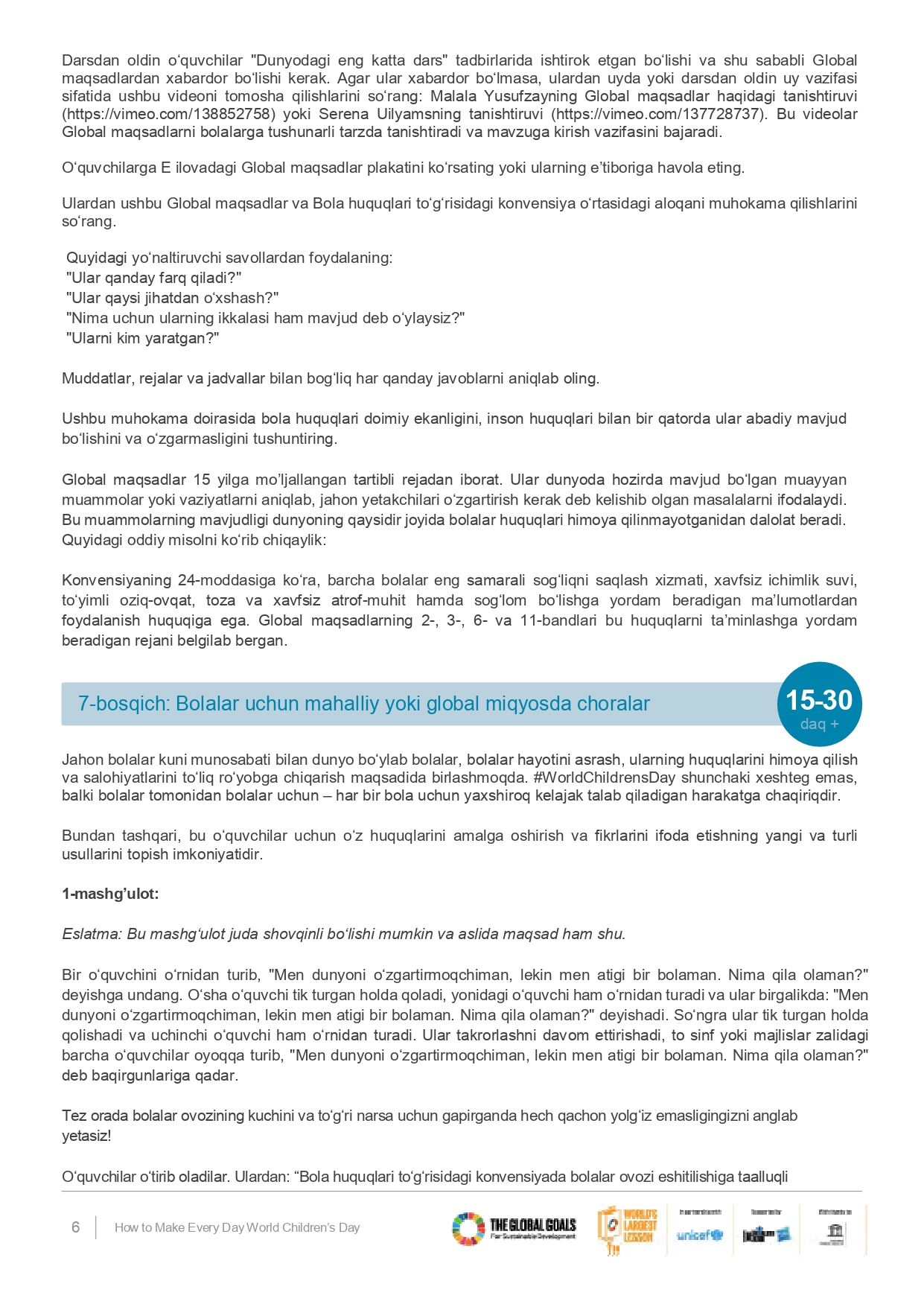 “Kelajak soati” darsining 1–4-sinflar uchun mashg‘ulot ssenariysi: