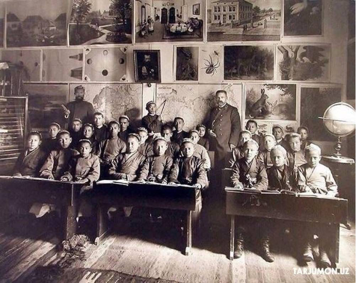 – Bolajonlar, hozir sizlar ikki xil maktabning suratini ko‘ryapsiz. Har ikkisi ham bizning tariximizda bo‘lgan maktablar. 1-suratdagi maktab 150 yil oldingi, 2-suratdagi esa 120 yil oldingi maktab. Juda sinchiklab qarang. Farqini topa olasizmi?