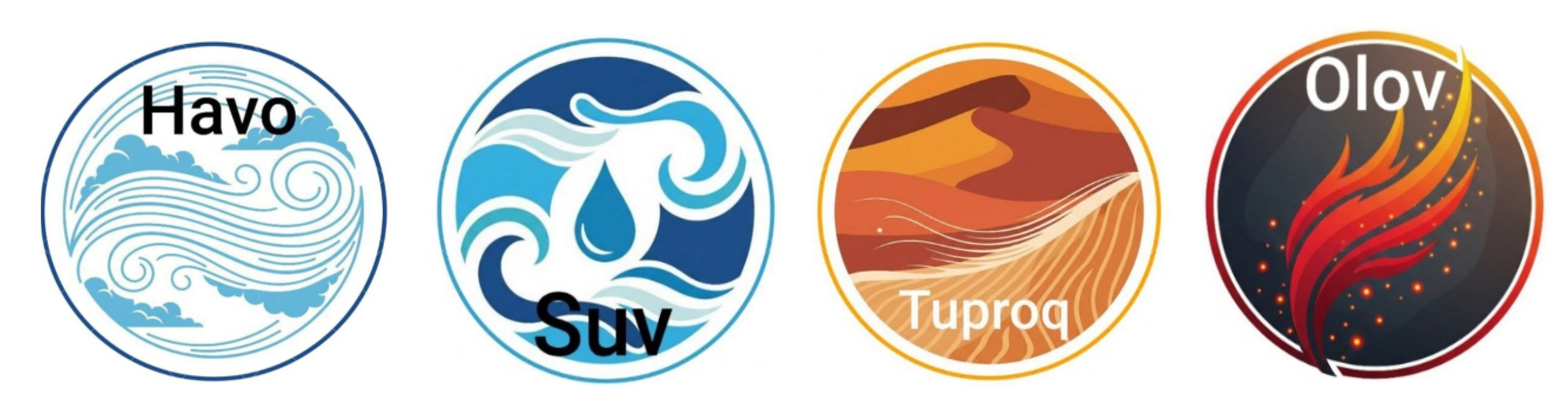 “Havo” guruhi: Agar suv bo‘lmasa, hayot bo‘lmaydi. Tuproqdan namlik qochadi, hech narsa o‘smaydi. Havoning tarkibi ham suvning bug‘lanishiga bog‘liq. Suv – hayotning asosi. Suvsiz tuproq – cho‘l. Suvsiz olov – ofat. Suvsiz havo – quruq.